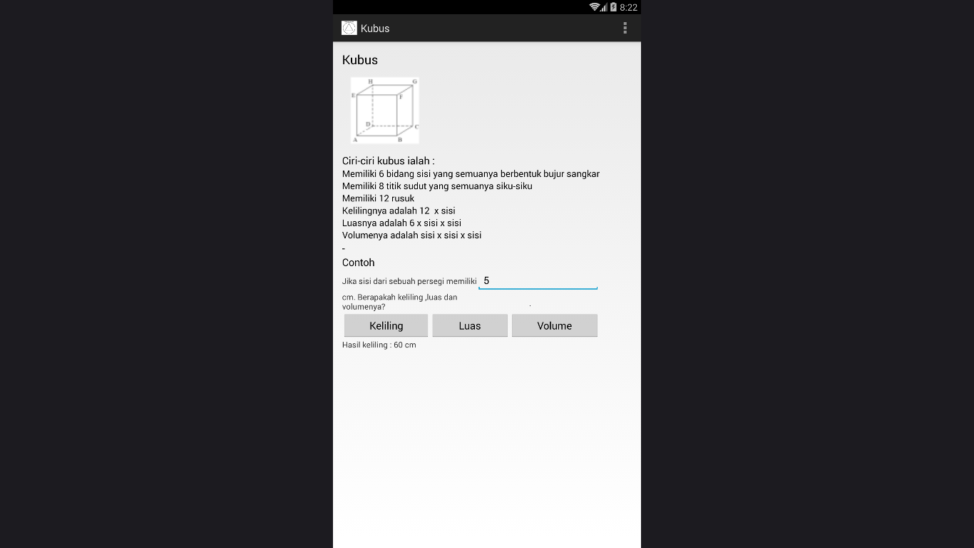 - Namun di hadang oleh kubus dengan keliling sisinya.